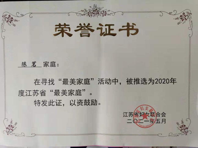 近日,2020年度江蘇省“最美家庭”揭曉,城控集團(tuán)下屬市政管網(wǎng)公司陳茗家庭喜獲江蘇省“最美家庭”榮譽(yù)稱(chēng)號(hào)。