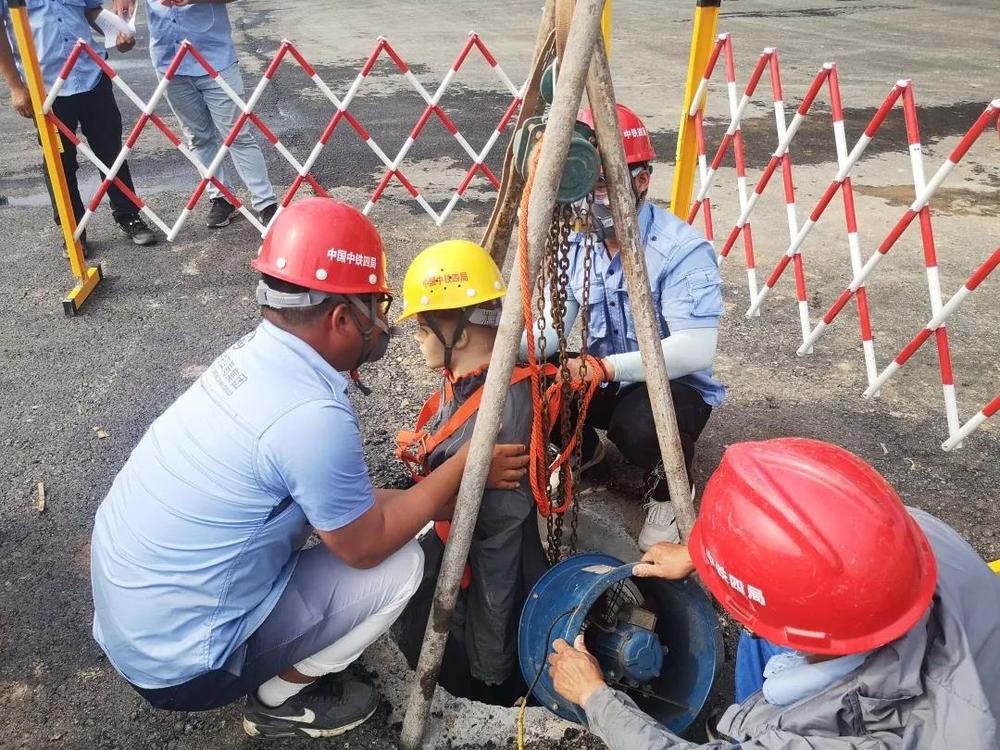 為切實(shí)做好安全生產(chǎn)工作,進(jìn)一步提高有限空間作業(yè)突發(fā)事件應(yīng)急處置水平,6月30日下午,萬(wàn)福公司組織開(kāi)展“有限空間作業(yè)突發(fā)事件”應(yīng)急救援演練活動(dòng)。萬(wàn)福公司安全總監(jiān)、工程管理負(fù)責(zé)人和三條快速路項(xiàng)目安全管理人員參加活動(dòng)。