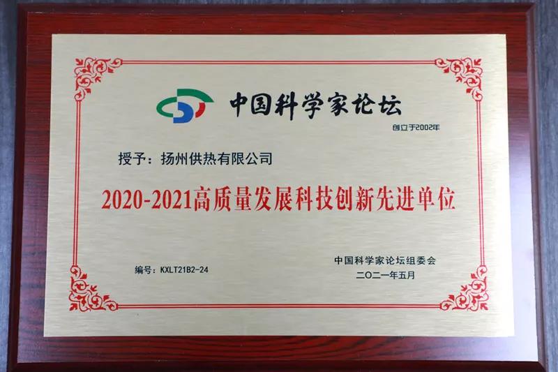 近日,揚(yáng)州供熱公司榮獲江蘇省燃?xì)鉄崃f(xié)會頒發(fā)的“2020年度抗疫保供和冬季安全保供突出貢獻(xiàn)單位”和中國科學(xué)家論壇組委會頒發(fā)的“2020-2021高質(zhì)量發(fā)展科技創(chuàng)新單位”榮譽(yù)稱號 。