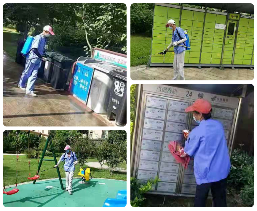 從接到屬地政府關(guān)于落實疫情防控措施,加強小區(qū)管控的要求起,香堤春曉保潔隊伍就每天上午、下午分別對小區(qū)進行2次全面消殺,電梯轎廂、電梯廳、門廳、把手,公共休閑區(qū)、兒童游樂區(qū),垃圾桶垃圾池及周邊……堅決做到不留死角,全方位消毒。