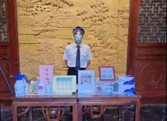 做好酒店防疫的第一道防線。工作人員充分發(fā)揮一崗多能、一人多專的作用,除了肩負(fù)對(duì)所有進(jìn)入酒店的人員驗(yàn)證“雙碼”,測(cè)量體溫,監(jiān)督所有進(jìn)入酒店的人員佩戴口罩的責(zé)任外,還根據(jù)防疫接待服務(wù)要求,主動(dòng)加強(qiáng)環(huán)境安全管理,在大堂設(shè)置1.5米分隔線進(jìn)行登記,每日對(duì)整個(gè)酒店園內(nèi)外定時(shí)消毒。