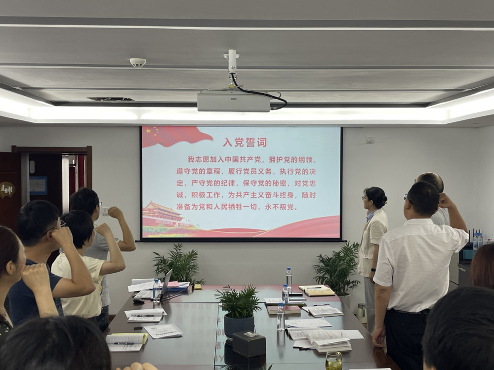 升旗儀式結(jié)束后,公司黨總支書記帶領(lǐng)全體黨員重溫了入黨誓詞,并為上半年入黨同志集中過政治生日,贈(zèng)送了政治賀卡及黨建書籍。隨后,全體人員觀看了黨建紀(jì)錄片《理想照耀中國(guó)》,記錄片生動(dòng)展示了新中國(guó)成立以來的優(yōu)秀共產(chǎn)黨人,為信仰奔走,為信仰奮斗,為信仰犧牲一切的偉大情懷與光輝形象。