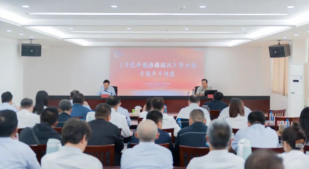 為深入學(xué)習(xí)貫徹習(xí)近平新時代中國特色社會主義思想,9月28日下午,長江水務(wù)公司舉辦《習(xí)近平談治國理政》第四卷專題學(xué)習(xí)講座,邀請揚州市委黨校丁健處長講課,公司黨委班子成員、各支部書記、各部門主要負(fù)責(zé)人、黨員代表聆聽講課。城控集團(tuán)黨委委員、長江水務(wù)公司董事長張正斌主持活動。