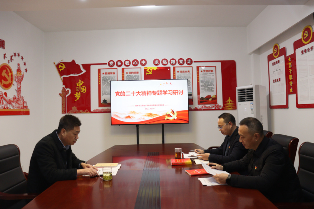 12月6日上午,潔源光伏公司黨支部召開支委學(xué)習(xí)會(huì),專題學(xué)習(xí)貫徹黨的二十大精神,并圍繞學(xué)習(xí)情況開展交流研討,支委班子成員參加會(huì)議。