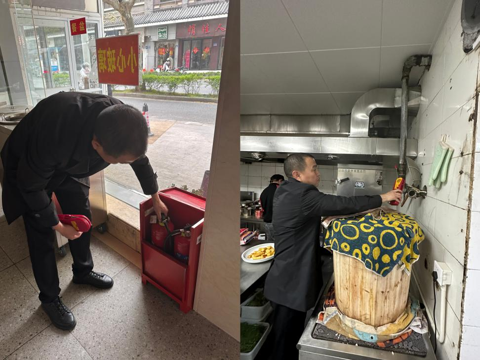 在迅客大食堂,安全員詳細(xì)查看了店內(nèi)消防器材、安全疏散通道等,對燃?xì)夤艿?、閥體進(jìn)行氣體泄漏檢查,要求餐飲負(fù)責(zé)人按消防規(guī)定配備應(yīng)急照明燈、滅火器等消防設(shè)備,同時提高安全用氣防范意識,每日定時對店內(nèi)燃?xì)庠O(shè)備進(jìn)行檢查,確保安全無泄漏。