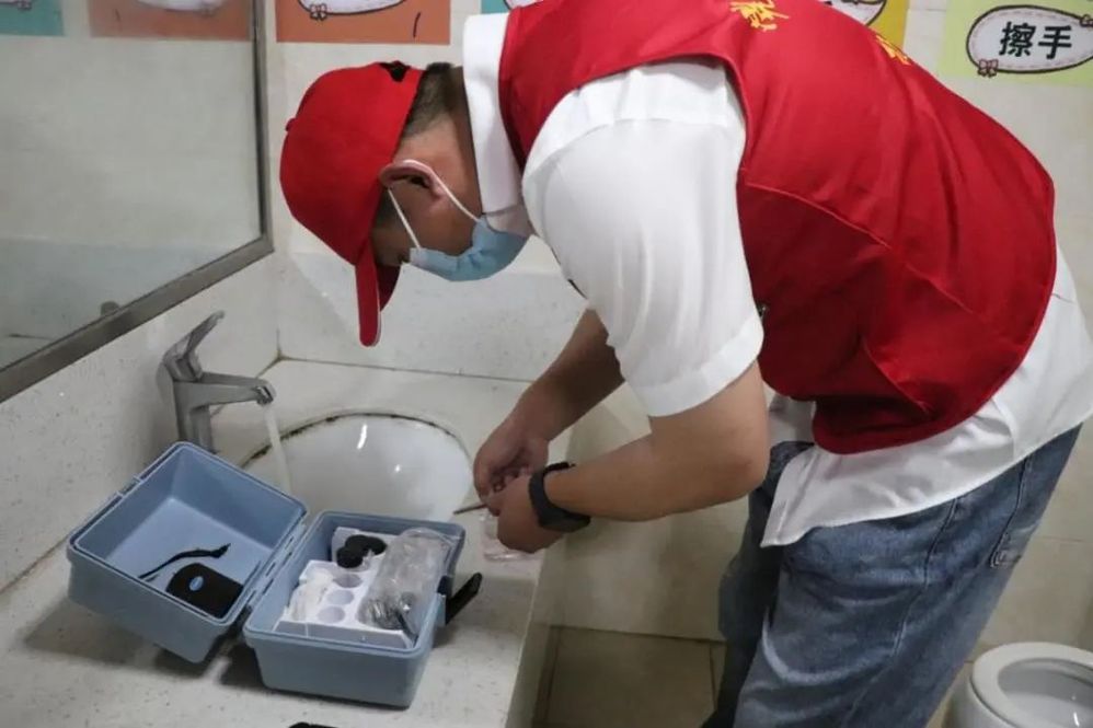 孩子們正在彩排“六一兒童節(jié)匯報演出”節(jié)目,“561”供水服務(wù)隊一到,熱情的孩子們就和大家打招呼,一起互動游戲,一起感受節(jié)日的歡樂和幸福?!鞍⒁毯?!”“謝謝阿姨!”“謝謝叔叔!”的童聲在歡聲笑語中此起彼伏。為保證雛鷹兒童發(fā)展中心夏季用水無憂,“561”供水服務(wù)隊為其檢測水質(zhì)水壓,免費維修故障供水設(shè)施,并積極宣傳供水知識。