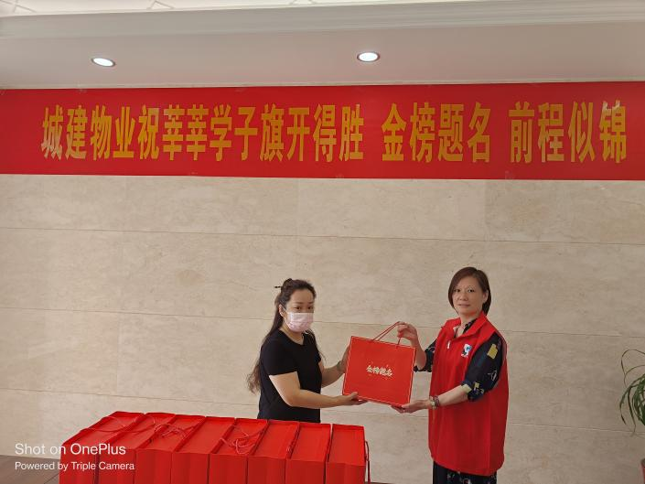 為了向中高考家庭表達(dá)關(guān)心,城建物業(yè)公司早早就統(tǒng)計(jì)了各服務(wù)項(xiàng)目今年參加中高考的家庭數(shù)量,特別定制了“旗開得勝金榜題名”狀元禮盒,并于6月3日上午開展集中慰問活動(dòng),為這些家庭送上了中高考前的祝福。