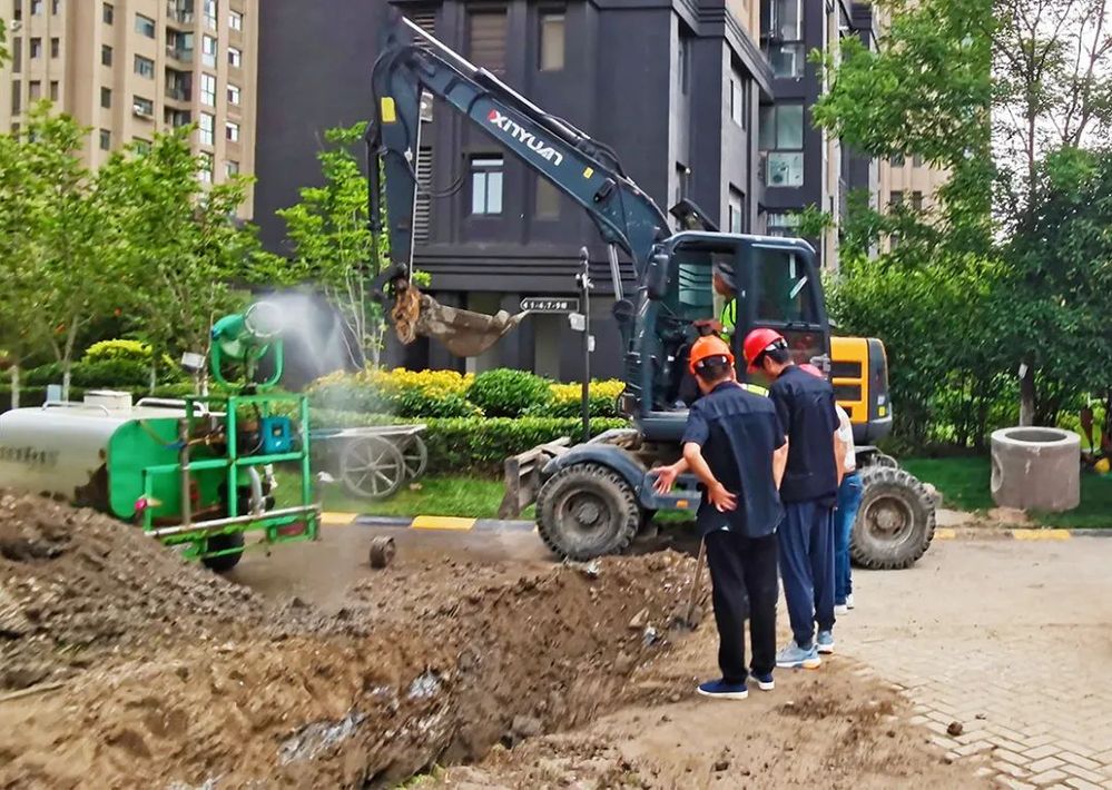 2023年6月3日15時30分,揚(yáng)州中燃公司24小時客服熱線接到工地監(jiān)護(hù)人員報修電話:君悅?cè)A府5幢附近,雨污水施工單位改造施工時將PE110低壓燃?xì)夤艿劳谄?,造成大量天然氣泄漏,請立即通知維修人員趕赴現(xiàn)場搶修。接報后,公司立即按照應(yīng)急處置流程,安排生產(chǎn)運(yùn)營部值班搶修人員趕赴現(xiàn)場。