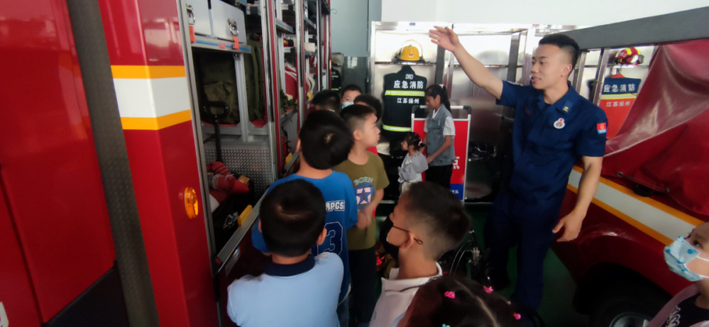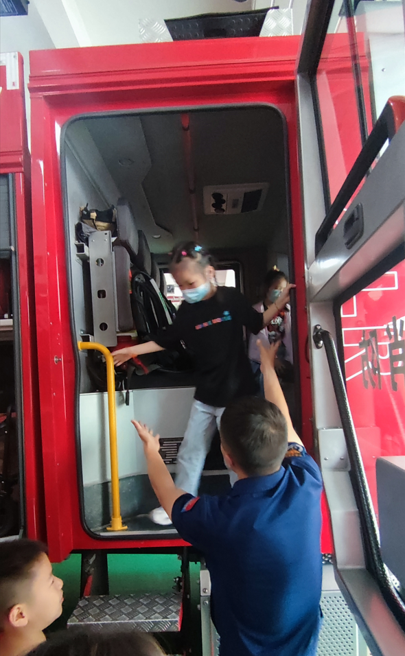 在實(shí)操體驗(yàn)中,消防人員現(xiàn)場(chǎng)邀請(qǐng)小朋友們零距離接觸消防裝備、親身試穿防護(hù)服、乘坐消防車、參觀消防救援隊(duì)員的日常生活。