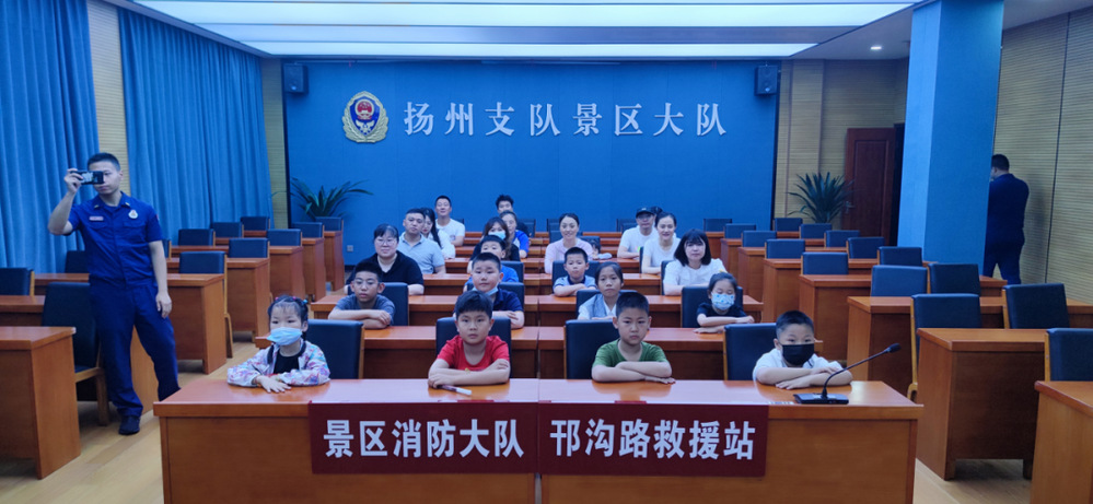 活動(dòng)開始,消防隊(duì)指導(dǎo)員首先播放了景區(qū)消防大隊(duì)的宣傳片,向職工和孩子們介紹了景區(qū)消防大隊(duì)的全貌,也展示了消防隊(duì)員風(fēng)采。