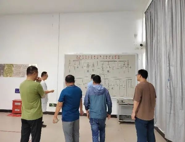 演練分為兩個(gè)部分。一是模擬將水頭線對(duì)1#主變供電調(diào)整為水北線對(duì)2#主變供電。變電所值班人員首先根據(jù)模擬要求,填寫倒閘操作票。確定操作票無(wú)誤后,一人監(jiān)護(hù),一人操作,在變電所模擬屏上進(jìn)行倒閘操作。二是模擬在倒閘操作后已恢復(fù)廠用電的情況下,對(duì)送水泵房、加藥間、取水泵房、提升泵房、深度處理車間等部位進(jìn)行生產(chǎn)恢復(fù)。隨后立即巡視各工藝段出水及設(shè)備運(yùn)行情況,并關(guān)注在線儀表數(shù)值是否正常。