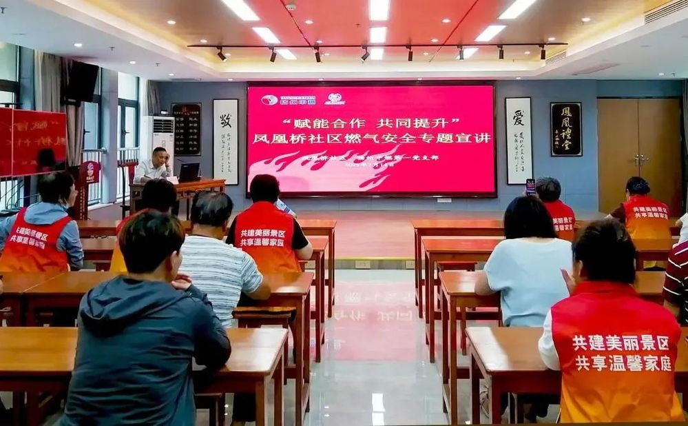 在社區(qū)活動室,來自鳳凰橋社區(qū)的黨員代表、網(wǎng)格員、微網(wǎng)格員30多人參加活動。藍焰融惠志愿者通過講解PPT、播放宣傳片的形式,從“如何進行燃氣安全自檢、用氣安全隱患分析、燃氣泄漏與事故發(fā)生的關(guān)聯(lián)度、用氣存在的不安全行為、燃氣泄漏應急處置措施”等方面進行了深入淺出的講解。志愿者現(xiàn)場就安裝金屬軟管等安全保護裝置的必要性、落實開窗通風這一最簡單最有效的方法與大家進行了答疑和交流。