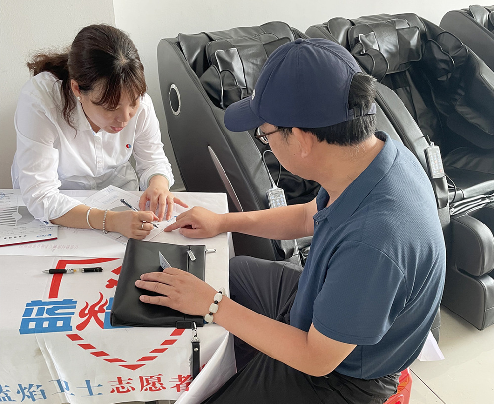 活動(dòng)前期,“藍(lán)焰衛(wèi)士”通過(guò)小區(qū)管道竣工圖、居民戶(hù)數(shù)來(lái)預(yù)估業(yè)務(wù)量,并前往現(xiàn)場(chǎng)與社區(qū)對(duì)接,溝通活動(dòng)時(shí)間與辦公地點(diǎn)。活動(dòng)現(xiàn)場(chǎng)分工明確、井然有序。夏日炎炎,為盡可能縮短群眾排隊(duì)等待時(shí)間,藍(lán)焰衛(wèi)士放棄休息,輪流上崗,以專(zhuān)業(yè)、敬業(yè)的態(tài)度為大家盡快完成業(yè)務(wù)辦理?;顒?dòng)當(dāng)天累計(jì)開(kāi)戶(hù)104戶(hù)。