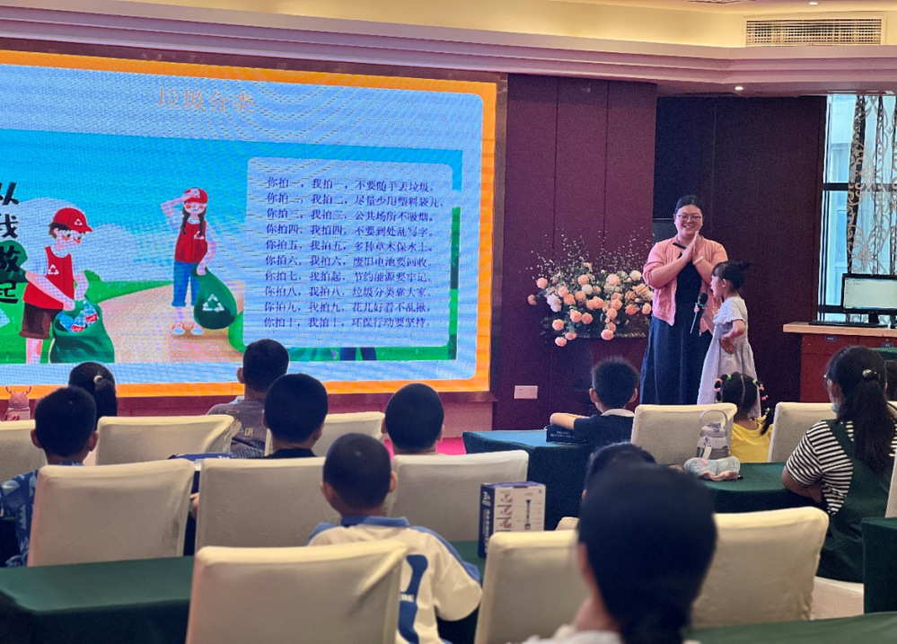 “小朋友們,在日常生活中,我們能為環(huán)保做些什么事情呢?”“進(jìn)行垃圾分類”小朋友們隨即說道,通過與小朋友們熱情互動(dòng),志愿者們鼓勵(lì)孩子們積極舉手發(fā)言,與在場(chǎng)的小朋友們齊聲誦讀環(huán)保兒歌,并鼓勵(lì)他們大膽發(fā)表自己的觀點(diǎn),讓他們明白垃圾是放錯(cuò)了地方的資源,正確地進(jìn)行垃圾分類可以變廢為寶。