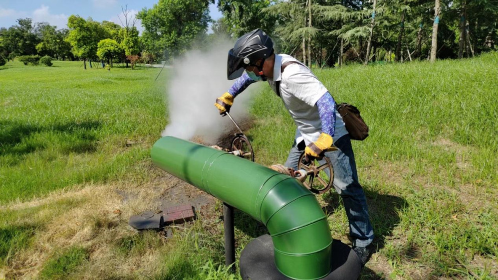 非供熱季由于用戶用氣量減少,管網(wǎng)負荷降低,蒸汽管道內(nèi)容易出現(xiàn)水沖擊情況,為避免水沖擊更要加強巡檢?!霸绨l(fā)現(xiàn),早治療”,一旦發(fā)現(xiàn)振動,就要立即加大疏水保證供熱管網(wǎng)安全。炎炎日正午,灼灼火俱燃,伴隨著夏日聒噪的蟬鳴與滾滾的熱浪,巡檢員身穿工作服,頭戴安全帽,在這150公里的炎炎管線周邊奔波,為高溫下的設備“做體檢”,用雙腳丈量這片熱土,只為保障熱網(wǎng)“健康”度夏。他們手中的工具猶如醫(yī)生的手術刀,始終守護著全城熱網(wǎng)的“安全線”。熱浪炙烤皮膚、汗水濕透衣背是他們的工作常態(tài),用他們的話來說:早已習慣。