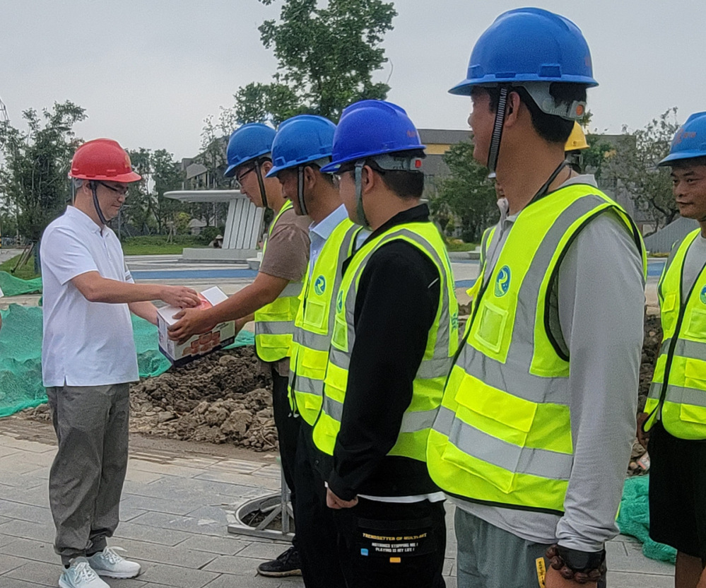 8月9日上午,揚(yáng)州市經(jīng)開(kāi)區(qū)建設(shè)局、棒杰新能源科技有限公司負(fù)責(zé)人一行看望慰問(wèn)了樸席片區(qū)“棒杰項(xiàng)目”專(zhuān)項(xiàng)給水管道工程的建設(shè)者,感謝他們?yōu)榻?jīng)開(kāi)區(qū)招商引資和民生保障付出的辛勞,向奮戰(zhàn)在項(xiàng)目一線的長(zhǎng)江水務(wù)建設(shè)者致以崇高敬意和誠(chéng)摯問(wèn)候。