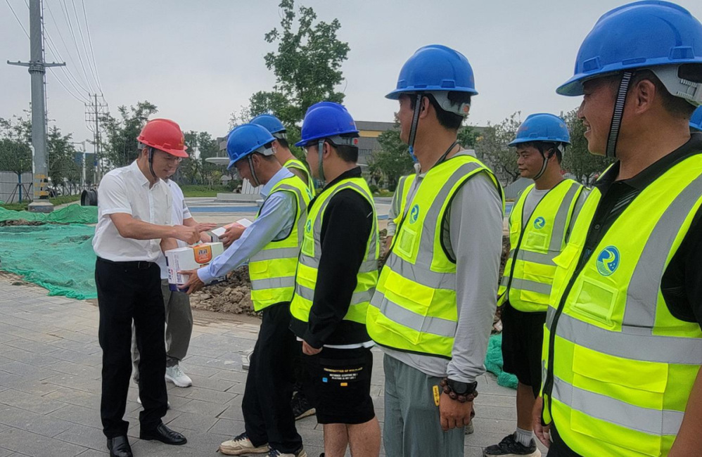 慰問(wèn)組一行深入施工一線,在現(xiàn)場(chǎng)詳細(xì)了解了項(xiàng)目工程進(jìn)展、安全文明施工、防暑降溫措施等情況,仔細(xì)詢(xún)問(wèn)了項(xiàng)目推進(jìn)中的堵點(diǎn)卡點(diǎn),現(xiàn)場(chǎng)辦公,推進(jìn)解決,并為一線建設(shè)者送上了防暑降溫慰問(wèn)品。