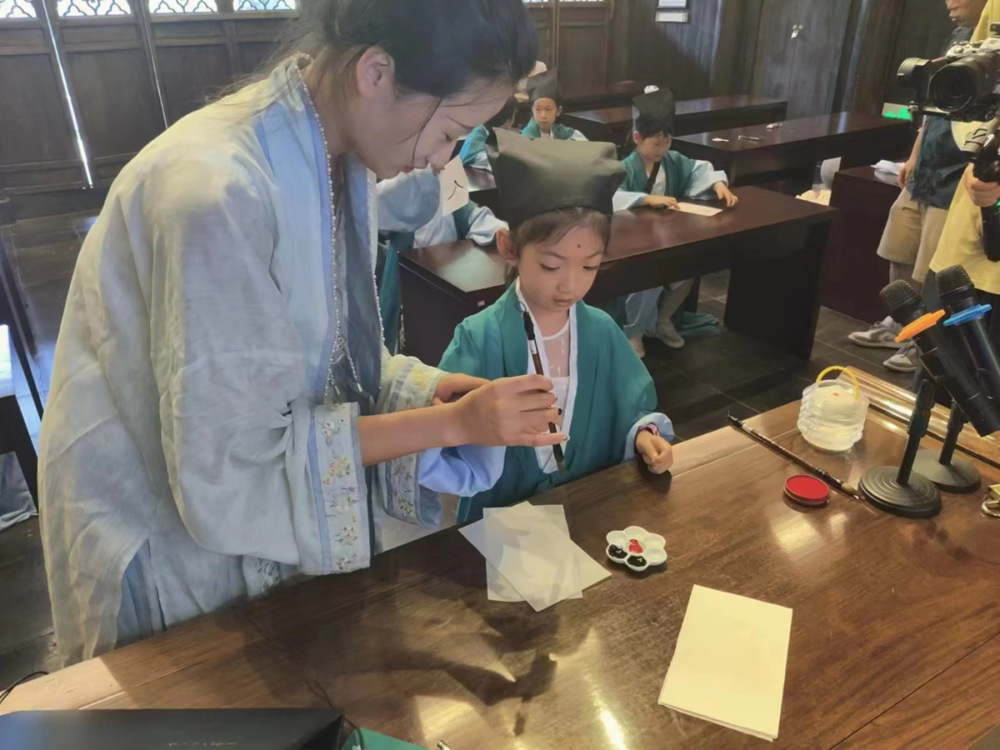 蒙學(xué)禮儀環(huán)節(jié)再現(xiàn)了阮元對于教育的重視。學(xué)員們端坐坐案前,聆聽著古時(shí)教學(xué)的內(nèi)容,感受了傳統(tǒng)蒙學(xué)的學(xué)習(xí)方式。通過此次親身體驗(yàn),大家更加深刻明白了阮元崇尚儒學(xué)、注重教育的人生態(tài)度。