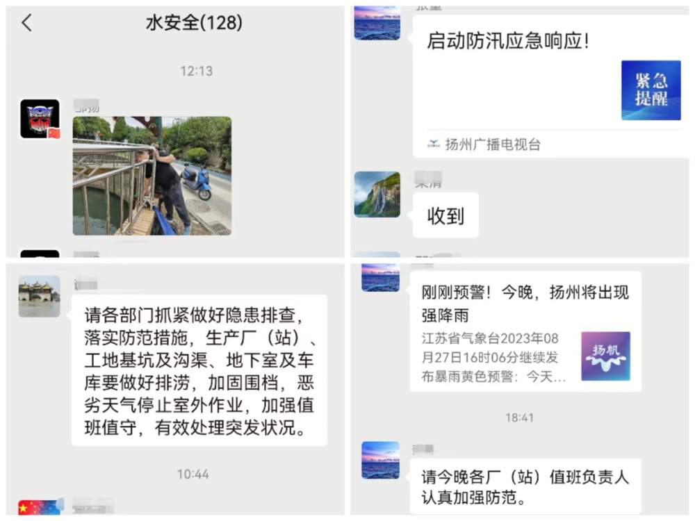 長江水務(wù)公司主要負(fù)責(zé)人和分管負(fù)責(zé)人連續(xù)在“中層管理”“水安全”微信工作群內(nèi)發(fā)布暴雨預(yù)警,提醒加強(qiáng)防范,強(qiáng)化調(diào)度指令,層層落實(shí)安全生產(chǎn)責(zé)任。長江水務(wù)公司各生產(chǎn)、服務(wù)、搶修和施工部門啟動(dòng)應(yīng)急預(yù)案,備足備齊防汛物資,24小時(shí)保持人員在崗值守,及時(shí)上報(bào)所在區(qū)域的雨情、汛情和應(yīng)急處置的措施。