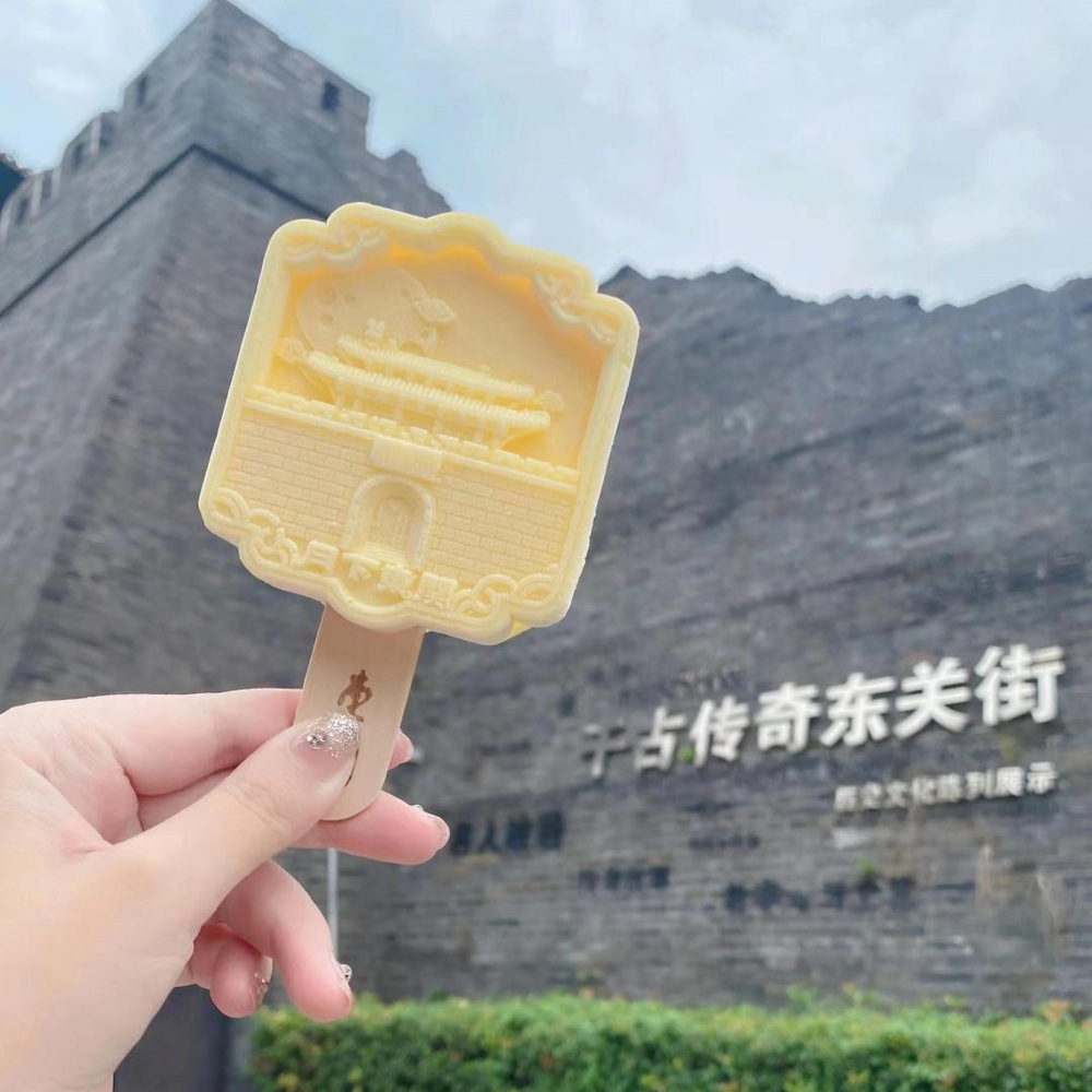 此次推出的文創(chuàng)冰淇淋將地標(biāo)性建筑等比例縮小的“建筑派”,是文創(chuàng)雪糕中極具代表性的一種,雪糕造型借鑒了東關(guān)街城門樓的概念,雪糕將古代城樓的遺風(fēng)凸顯的恰到好處,將十大歷史文化名街的氣派展示的淋漓盡致。手持“mini”版和建筑本體來張合影,已經(jīng)成為了新興的旅游打卡方式之一。