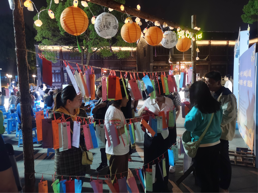 活動通過“賞中秋-多巴胺月亮”“嬉中秋-賞月園游會”“頌中秋-拜月大典”“品中秋-中秋雅集”四部分遞進開展,居民朋友在現(xiàn)場參與了中秋燈謎會、投壺,花燈手作、做月餅、夜兔燈籠等活動,在古風(fēng)賞月游園活動中體驗中秋民俗,感受中華傳統(tǒng)文化的魅力,共享中秋團圓喜樂之美。