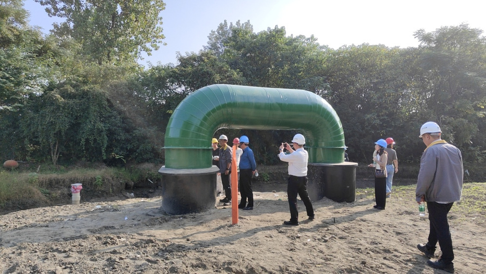 三期四標(biāo)管道設(shè)計(jì)DN600主管從三期三標(biāo)段接出,沿廖家溝河堤西外側(cè)向北敷設(shè)至廣陵大橋,與已建二期管線預(yù)留口連接,全長(zhǎng)約2206米。其中,過(guò)328國(guó)道頂管部分為三期四標(biāo)施工關(guān)鍵節(jié)點(diǎn),長(zhǎng)約199米,兩座沉井分別位于328國(guó)道南、北兩側(cè),施工工藝復(fù)雜,精度控制要求高。公司項(xiàng)目組堅(jiān)持問(wèn)題導(dǎo)向,聚焦項(xiàng)目推進(jìn)中存在的難點(diǎn),強(qiáng)化要素保障,積極協(xié)調(diào)解決,以優(yōu)質(zhì)的施工工藝、嚴(yán)格的質(zhì)量把控、科學(xué)的施工方案,確保了頂管施工的安全可控、精準(zhǔn)對(duì)位。
