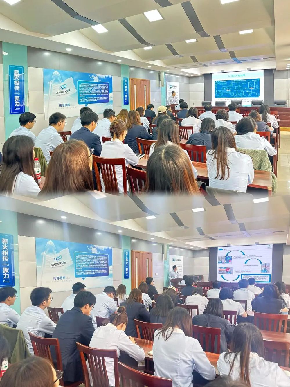 運行調度中心蔡陽、陳遲立足崗位實際,深入淺出地介紹了污水泵站運行調度情況、泵站設施配備情況以及常見故障排查檢修工作等。講授過程既有實例分析、又有理論解析,回顧總結近段時間泵站運營調度工作中的所思所想所悟。與會青年同志表示通過此次活動,學習到了業(yè)務知識和實踐方案,并將做到“舉一反三”不斷用學到的知識提升解決實際問題的能力和水平。