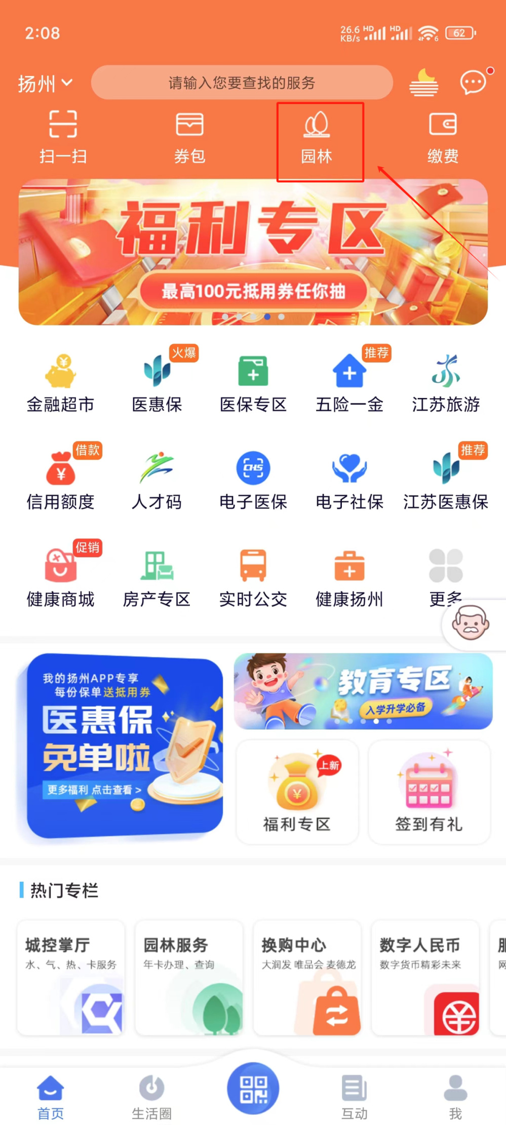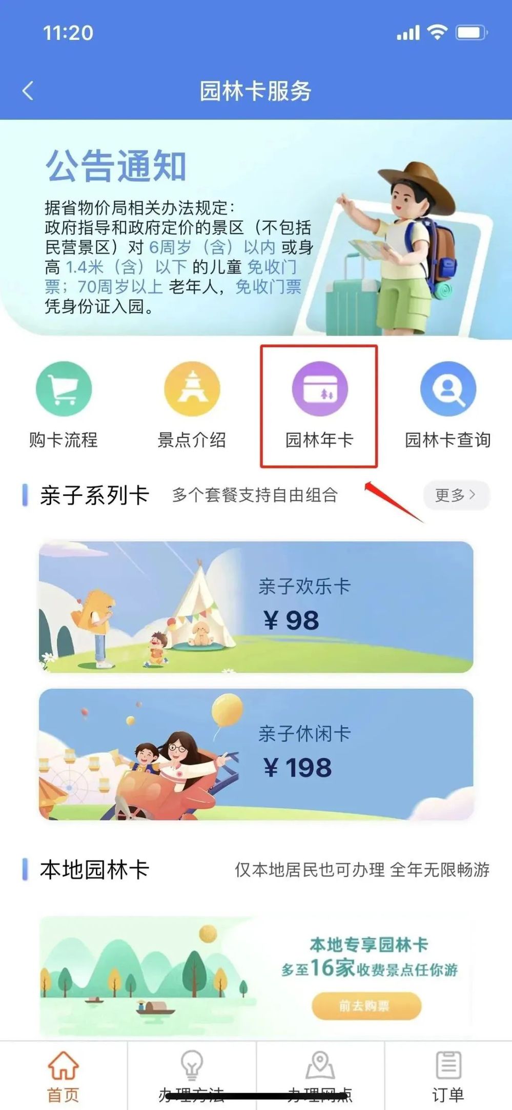 點(diǎn)擊“園林”,進(jìn)入“園林卡服務(wù)”選擇“園林年卡”。