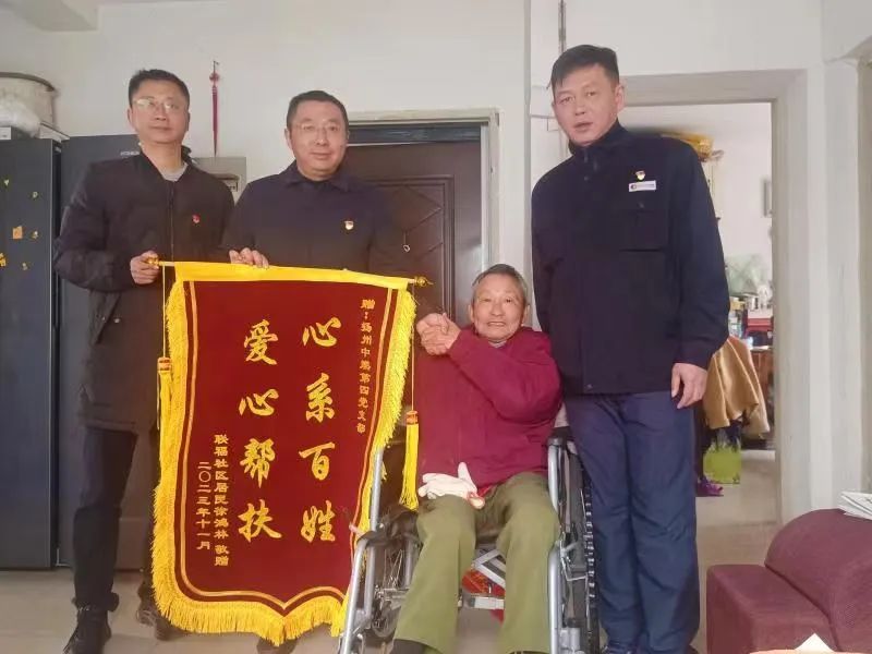 2023年11月30日上午,連福社區(qū)徐鴻林老人向揚(yáng)州中燃公司第四黨支部贈送了一面“心系百姓 愛心幫扶”錦旗,以表達(dá)對藍(lán)焰老兵志愿者長期服務(wù)的感謝。
