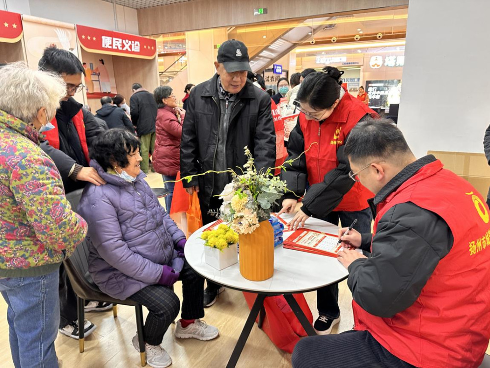 活動(dòng)中,身著紅馬甲的黨員志愿者熱情服務(wù)著周邊的老人,他們一邊按照老人的要求給他們修剪發(fā)型一邊和他們話家常,讓原本枯燥的理發(fā)變得溫馨起來,另一邊的志愿者們在為老人量血壓、測血糖,并向他們講解如何預(yù)防高血壓的知識?;顒?dòng)結(jié)束后,志愿者們又承擔(dān)起了打掃衛(wèi)生的工作,他們手持掃帚,認(rèn)真打掃著商場內(nèi)的活動(dòng)場地,讓商場恢復(fù)了干凈整潔。