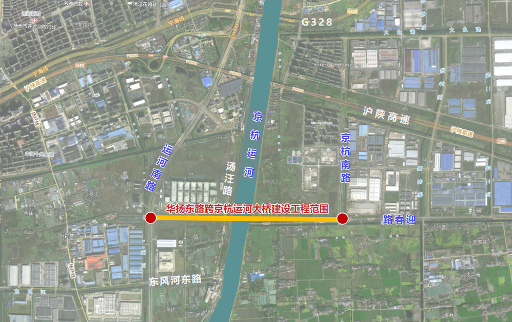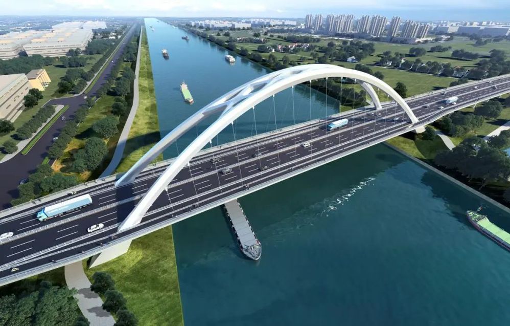 華揚東路跨京杭運河大橋建設工程采用雙向六車道標準,設計速度為50km/h,全長1.92km。其中,新建橋梁1座,主橋采用200m提籃拱橋,引橋采用混凝土連續(xù)箱梁。項目總投資約4.5億元。華陽東路是揚州城區(qū)規(guī)劃“二十五橫十七縱”主干路網的關鍵一環(huán),也是連接經濟開發(fā)區(qū)與廣陵區(qū)的交通命脈。大橋建成后,將有效緩解區(qū)域交通擁堵狀況,促進區(qū)域間經濟往來、資源共享與協(xié)同發(fā)展。
