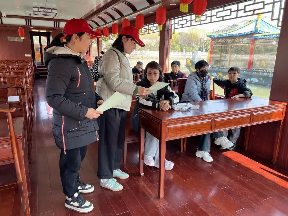 3月19日下午,志愿者們早早來到碼頭,登上游船向游客發(fā)放宣傳資料,詳細(xì)介紹“世界水日”的由來、意義和節(jié)約用水的重要性,呼吁大家關(guān)注水資源保護(hù)。同時(shí),志愿者們深入講解了古運(yùn)河的歷史文化,讓游客們在欣賞美景的同時(shí),感受到古運(yùn)河的獨(dú)特魅力。志愿者們還手持垃圾鉗、垃圾袋,沿著河岸,仔細(xì)清理河面上的漂浮物和岸邊的垃圾,他們的行動(dòng)不僅美化了河道環(huán)境,也為周邊居民樹立了榜樣。