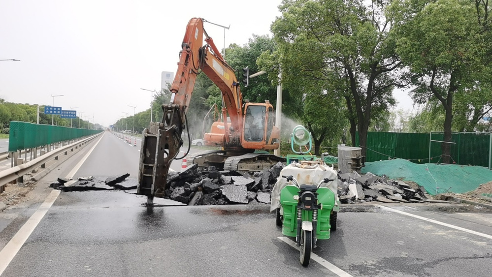 施工現(xiàn)場(chǎng)劃分為南北兩階段,采用“日間備料、夜間突擊”模式,履帶式破碎機(jī)對(duì)原路面分層切割破除后,同步啟動(dòng)鋼板樁支護(hù),施工人員輪班施工作業(yè)。面對(duì)溝槽深度近4米、毗鄰?fù)ㄐ熊嚨赖蕊L(fēng)險(xiǎn),安全員全程旁站監(jiān)督,每30分鐘巡查支護(hù)結(jié)構(gòu)穩(wěn)定性。