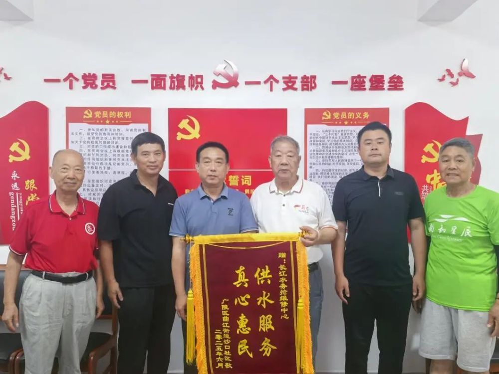 6月17日上午,沙口社區(qū)老年活動(dòng)室負(fù)責(zé)人來(lái)到長(zhǎng)江水務(wù)搶維修中心辦公樓,將寫有供水服務(wù),真心惠民的錦旗贈(zèng)予搶維修中心,并表示此行重點(diǎn)是表達(dá)對(duì)長(zhǎng)江水務(wù)“管子鉗突擊隊(duì)”解決老年活動(dòng)室用水困難的感謝。