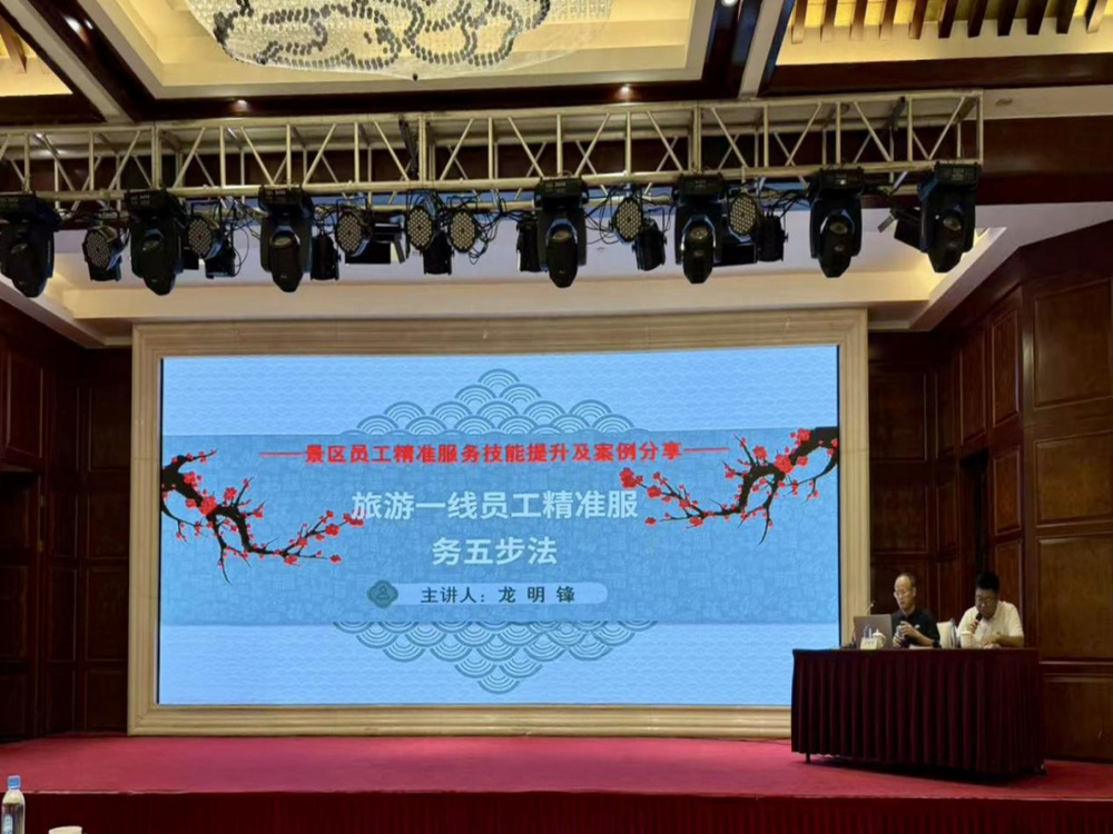 培訓(xùn)內(nèi)容緊密貼合實(shí)際工作需求,涵蓋游客需求的新變化洞察、景區(qū)精準(zhǔn)服務(wù)五項(xiàng)新技能以及典型案例實(shí)戰(zhàn)演練。來自揚(yáng)州大學(xué)的龍明鋒教授作為主講嘉賓,憑借其在景區(qū)運(yùn)營管理、旅游規(guī)劃等領(lǐng)域深厚的理論功底與豐富實(shí)踐經(jīng)驗(yàn),深入剖析當(dāng)前旅游市場趨勢,分享了從智慧景區(qū)建設(shè)到游客個(gè)性化服務(wù)定制等前沿理念。培訓(xùn)過程中,龍教授結(jié)合多項(xiàng)省部級(jí)科研項(xiàng)目與旅游規(guī)劃項(xiàng)目經(jīng)驗(yàn),生動(dòng)解讀如何將服務(wù)技能轉(zhuǎn)化為游客滿意度提升的具體行動(dòng),為參訓(xùn)人員帶來諸多啟發(fā)。