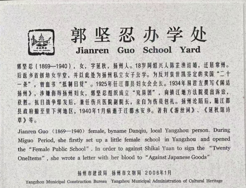 郭堅忍的一生,恰似晚清至民國社會裂變的微觀縮影。當揚州城仍困于“三寸金蓮”的舊俗枷鎖時,她已以不纏足會為刃,悄然剖開封建禮教的肌理;當廣儲門故居的青磚灰瓦默立如常,其內(nèi)里早已成為女性掙脫閨閣的革命道場。這座看似尋常的民國建筑,實則是中國女性破繭成蝶的精神地標——女學課堂的瑯瑯書聲與時代電波的滴答密語在此共振,將封建末世的挽歌,譜寫成一曲近代婦女解放的覺醒先聲。