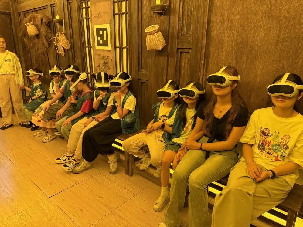 孩子們在老師的帶領下走進淮揚菜博物館,從古籍記載的飲食習俗,到非遺傳承人的技藝展示,大家一邊觀察飲食文物,一邊聆聽講解,在互動中了解到淮揚菜與古代飲食文化的深厚關聯(lián)。緊隨其后的唐朝詭事錄VR劇場成為活動高潮,孩子們戴上VR眼鏡,瞬間“穿越”至盛唐街頭,化身“小偵探”跟隨劇情線索探尋關于荔枝的謎題。虛實交織的場景、生動有趣的互動,讓抽象的歷史故事變得可感可觸?;顒游猜?,孩子們圍坐一堂開啟“荔枝課堂”,老師從杜牧“一騎紅塵妃子笑”的詩句切入,講解荔枝的歷史典故、生長特性與文化寓意,讓孩子們在詩詞與美食的碰撞中深化認知。最后,孩子們親手將新鮮荔枝制成清甜飲品,在動手過程中體會“勞動創(chuàng)造美味”的樂趣。