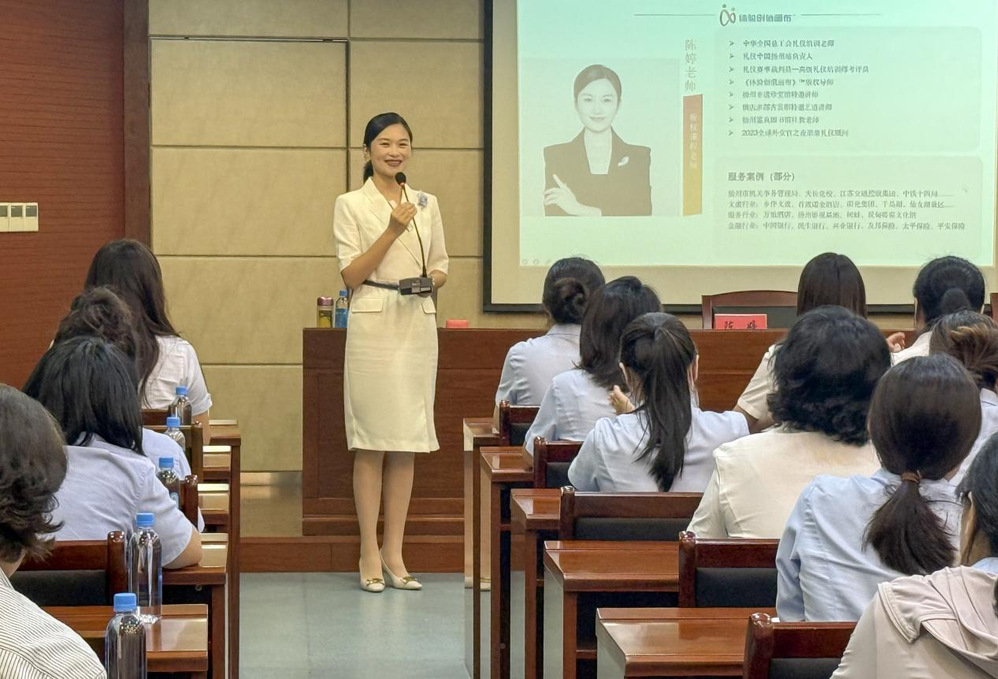 本次培訓(xùn)采用“理論+案例+情景模擬”的沉浸式教學(xué)模式,特邀禮儀中國江蘇揚州總負(fù)責(zé)人陳婷老師授課。培訓(xùn)以“服務(wù)溝通技巧與文明用語”為主題,聚焦窗口服務(wù)場景,涵蓋服務(wù)體驗三層重構(gòu)、微服務(wù)溝通精煉、心體驗實戰(zhàn)沙盤等三個部分。理論教學(xué)環(huán)節(jié),陳老師系統(tǒng)講解了服務(wù)過程中文明用語標(biāo)準(zhǔn)、行為舉止要領(lǐng)等,通過實際案例分享共情思維與溝通技巧,幫助參訓(xùn)人員提高服務(wù)對象接待、服務(wù)矛盾化解等實務(wù)能力。情景模擬環(huán)節(jié),參訓(xùn)人員現(xiàn)場實踐服務(wù)用語,通過強(qiáng)化標(biāo)準(zhǔn)化服務(wù)意識和服務(wù)能力來提升用戶體驗。培訓(xùn)現(xiàn)場學(xué)習(xí)氛圍濃厚、互動氣氛熱烈。