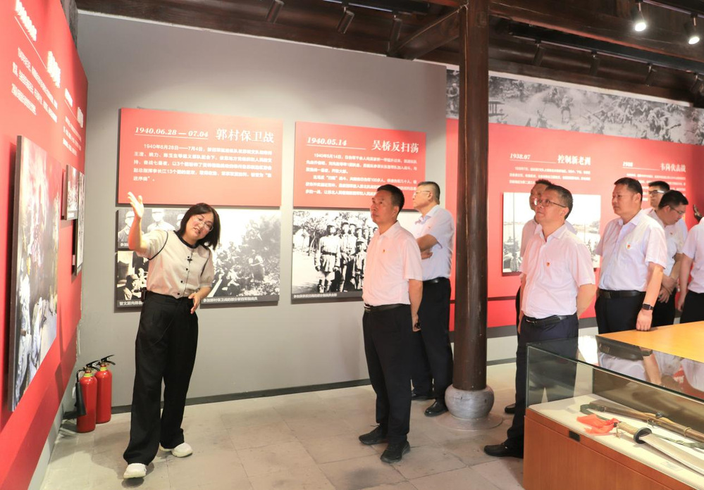 紀(jì)念館內(nèi),泛黃的史料呈現(xiàn)著斑駁的抗戰(zhàn)圖景。跟隨講解員的細(xì)致講述,大家詳細(xì)了解了陳毅、粟裕率領(lǐng)新四軍在此建立蘇北指揮部的歷史脈絡(luò),系統(tǒng)學(xué)習(xí)了新四軍在蘇北抗戰(zhàn)歷程與革命事跡。觀過(guò)程中,黨員們不時(shí)駐足于作戰(zhàn)地圖前,凝視著戰(zhàn)士用過(guò)的槍械、村民支援的布鞋,在以少勝多、軍民同心的史料紀(jì)實(shí)中,深切感悟“聽黨指揮、敢打必勝”的鐵軍精神。
