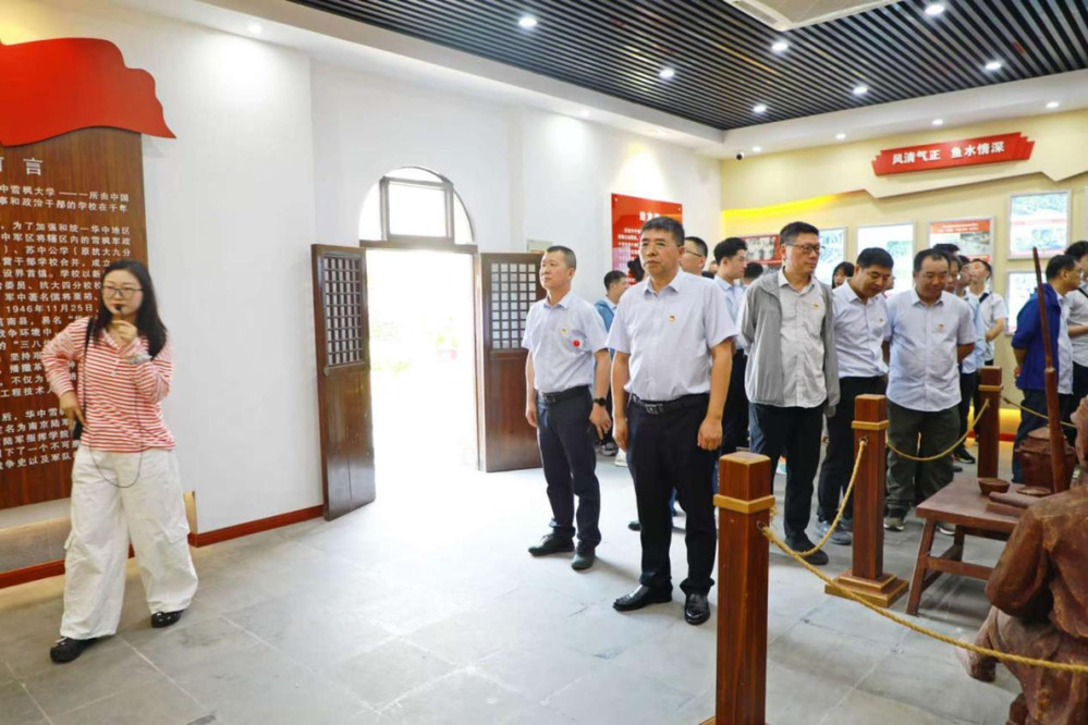 在華中雪楓大學(xué)舊址,全體人員通過參觀校史展覽和聆聽講解,了解了這所解放戰(zhàn)爭(zhēng)時(shí)期創(chuàng)辦的高等學(xué)校的輝煌歷史,對(duì)雪楓大學(xué)培養(yǎng)革命干部、為抗戰(zhàn)勝利和新中國(guó)成立做出的重要貢獻(xiàn)產(chǎn)生了深刻認(rèn)識(shí)。隨后,大家來到揚(yáng)州侵華日軍向新四軍投降處舊址,深入了解1945年新四軍收復(fù)高郵城的戰(zhàn)役歷程及受降儀式場(chǎng)景。銹紅的歷史浮雕、詳實(shí)的文字資料和直觀的沙盤模型,讓大家對(duì)高郵作為抗日戰(zhàn)爭(zhēng)“最后一役”發(fā)生地的歷史意義有了更深切的體會(huì),對(duì)革命先輩們?cè)⊙獖^戰(zhàn)、保家衛(wèi)國(guó)的英勇事跡肅然起敬。