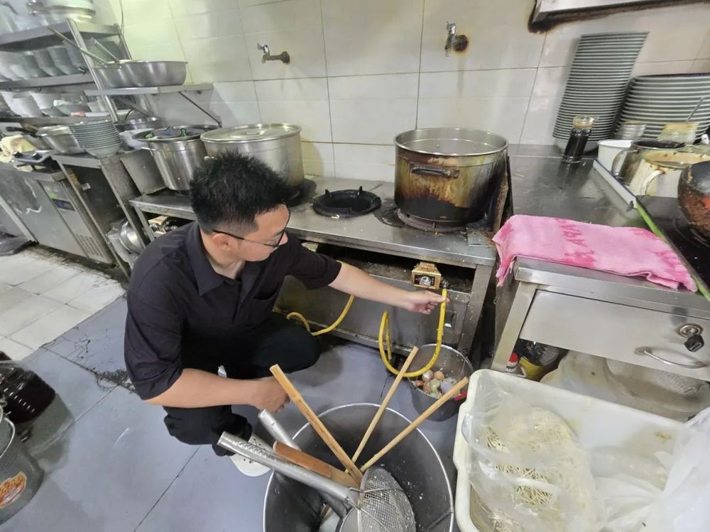 上午7點(diǎn),東關(guān)街的晨光剛剛漫過(guò)青磚墻,安全員魯毅便已穿上工作服,開(kāi)始了一天的工作。他首先來(lái)到街區(qū)東側(cè)的餐飲商鋪聚集區(qū),手持測(cè)溫儀檢查后廚用電情況?!巴跏澹@根軟管用了三年了吧?臺(tái)風(fēng)天風(fēng)大,咱們換個(gè)防爆管更安心。”魯毅邊說(shuō)邊聯(lián)系燃?xì)夤竟ぷ魅藛T上門更換新管,不到一小時(shí)便完成更換。這是他今日處理的第3起燃?xì)怆[患。