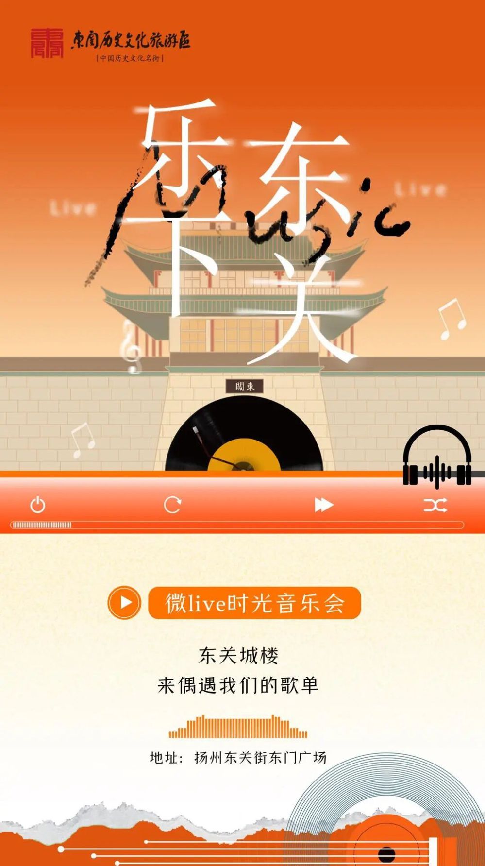 揚州東關(guān)街,這座承載著千年歷史的文旅名片,青磚黛瓦間流淌著廣陵古城的煙火與韻味。為進(jìn)一步挖掘其文旅潛力,推動音樂藝術(shù)與古城文化深度融合,響應(yīng)文旅產(chǎn)業(yè)高質(zhì)量發(fā)展需求,推動古城夜經(jīng)濟(jì),揚州市名城建設(shè)有限公司擬舉辦 “樂下東關(guān)” 微 Live 時光音樂會,讓千年城墻下響起 “流動的樂章”,為市民與游客帶來全新的文化體驗。
