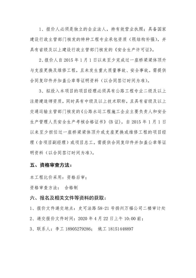 江陽(yáng)大橋(新橋部分)引橋支座維修處理工程比價(jià)文件.doc