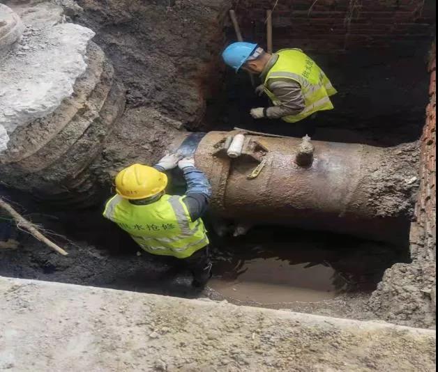 為確保搶修演練達(dá)到預(yù)期效果,長江水務(wù)搶修部門充分論證應(yīng)急搶修預(yù)案,成立了現(xiàn)場應(yīng)急搶修小組,細(xì)化搶修方案,落實(shí)預(yù)案啟動、基坑挖掘、管道維修等關(guān)鍵步驟,演練突出“精心、精準(zhǔn)”,即“精心準(zhǔn)備,精準(zhǔn)搶修”,達(dá)到了預(yù)期演練的目的。這次搶修的DN800鋼管,漏水部位需要加裝補(bǔ)漏器,在搶修演練之前,長江水務(wù)搶修部門提前訂制鋼管補(bǔ)漏器備用,保障搶修應(yīng)急需要。