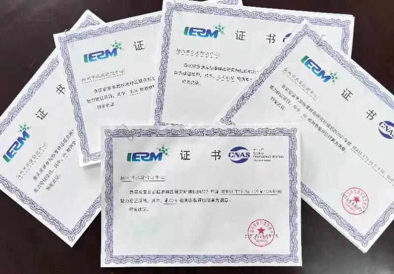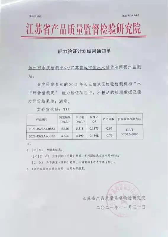能力驗證是國家認監(jiān)委考核CMA實驗室檢測能力的主要方法,通過發(fā)放盲樣考核各級實驗室檢測人員的檢測技能水平,能夠?qū)嵤虑笫堑胤从硨嶒炇业臋z測能力。2021年,水質(zhì)檢測中心通過國家生態(tài)環(huán)境部實驗室能力驗證,獲得氟化物等項目檢測滿意證書;通過江蘇省產(chǎn)品質(zhì)量監(jiān)督檢驗研究院組織的“長三角地區(qū)檢驗檢測機構(gòu)”水質(zhì)檢測能力驗證,也獲得項目檢測滿意證書。