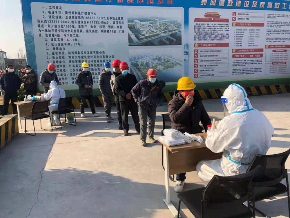 目前,置業(yè)公司在建項目已全部復(fù)工復(fù)產(chǎn),頤和項目和嘉都匯項目務(wù)工人員基本到崗。為切實做好建筑工地節(jié)后復(fù)工復(fù)產(chǎn)疫情防控工作,置業(yè)公司經(jīng)與項目所在地政府部門溝通,2月25日上午,頤和項目和嘉都匯項目現(xiàn)場分別開展了全員核酸檢測活動。