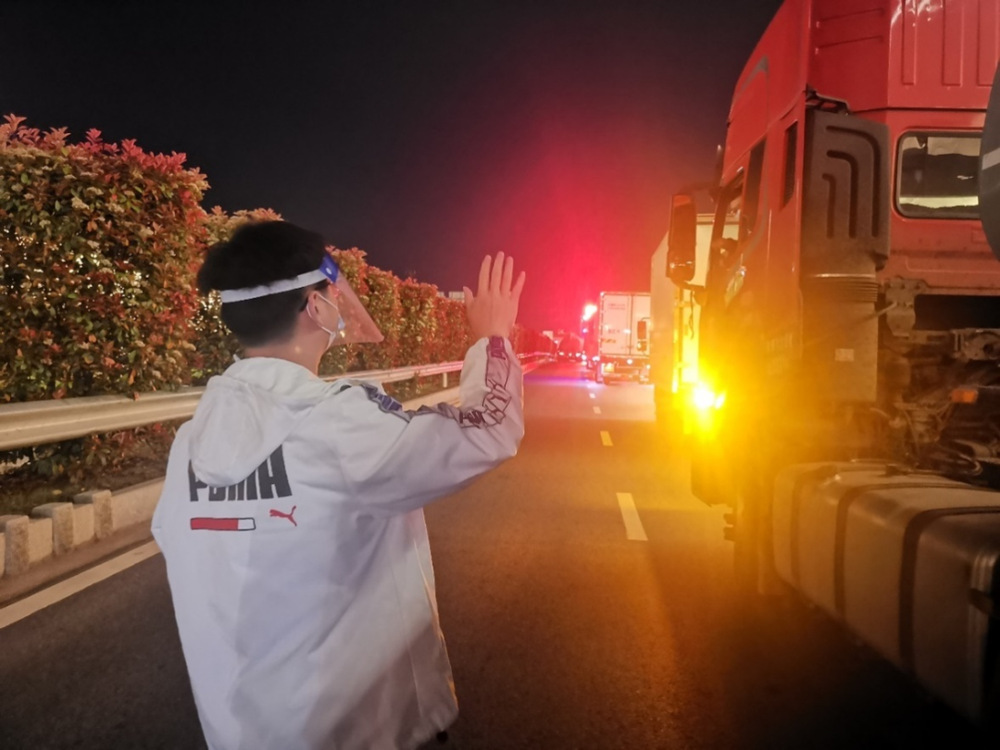 (總工程師辦公室黃肖輝,夜深時(shí)分在湯汪高速口送完最后一輛車,履行來(lái)?yè)P(yáng)返揚(yáng)貨車駕乘人員全過(guò)程閉環(huán)管理工作職責(zé))