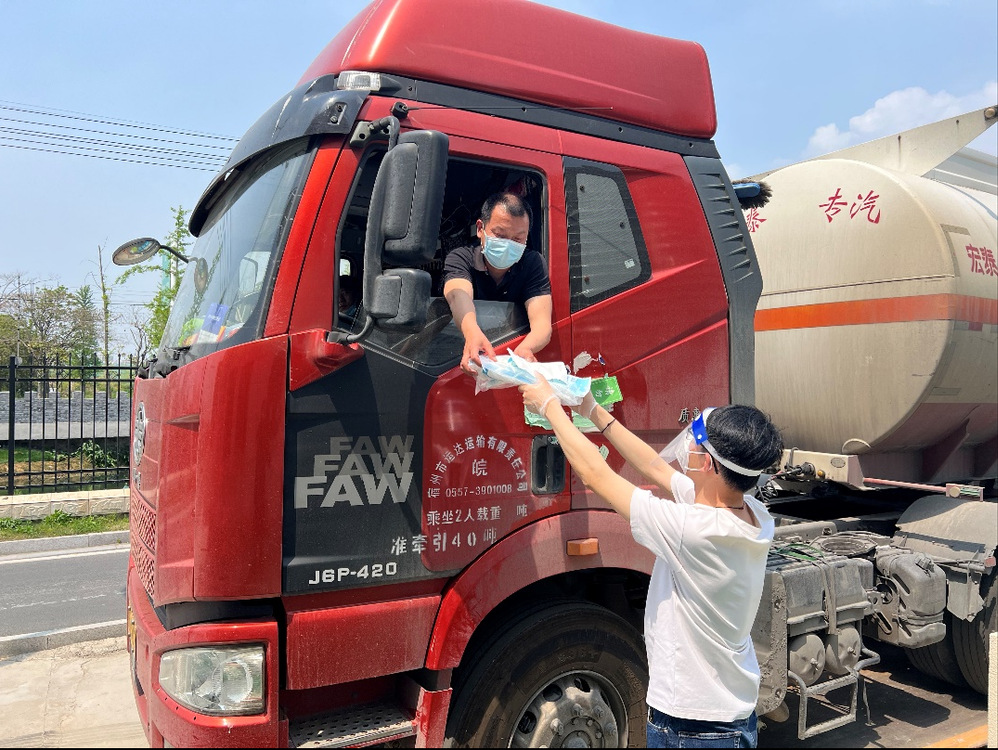 (生產(chǎn)運(yùn)行處朱張杰,給藥劑司機(jī)提供防護(hù)服、N95口罩等防護(hù)裝備,落實(shí)司機(jī)個(gè)人防護(hù)措施)