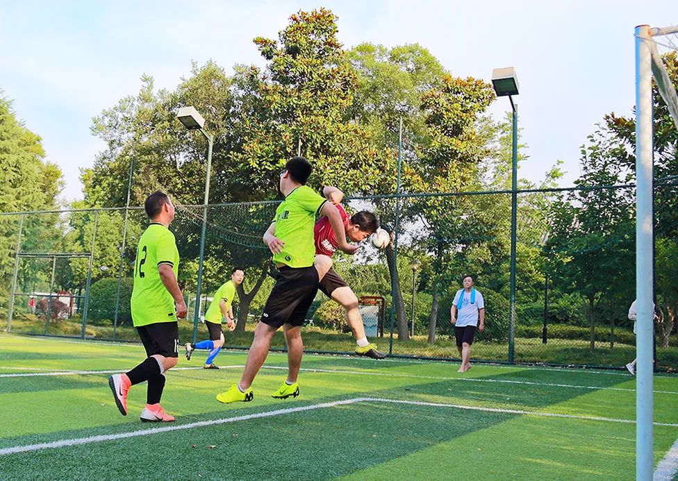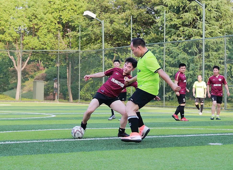 比賽采用7人制賽制, 上下半場(chǎng)各三十分鐘。隨著裁判一聲哨響,隊(duì)員克服高溫對(duì)體能帶來的影響,立刻開始了猛烈的進(jìn)攻,以細(xì)膩的腳法、默契的配合、攻防兼?zhèn)涞年?duì)形使比賽很快進(jìn)入白熱化狀態(tài)。球場(chǎng)上,雙方你來我往,激情四射,時(shí)而帶球、傳切、過人、狂奔、抽射,時(shí)而呼喚隊(duì)友、相互鼓勵(lì)、擊掌慶賀,發(fā)揮出了較高的技戰(zhàn)術(shù)水平。比賽始終在激烈友好的氣氛中進(jìn)行,展現(xiàn)了隊(duì)員們拼搏向上、勇爭(zhēng)第一的精神風(fēng)貌。
