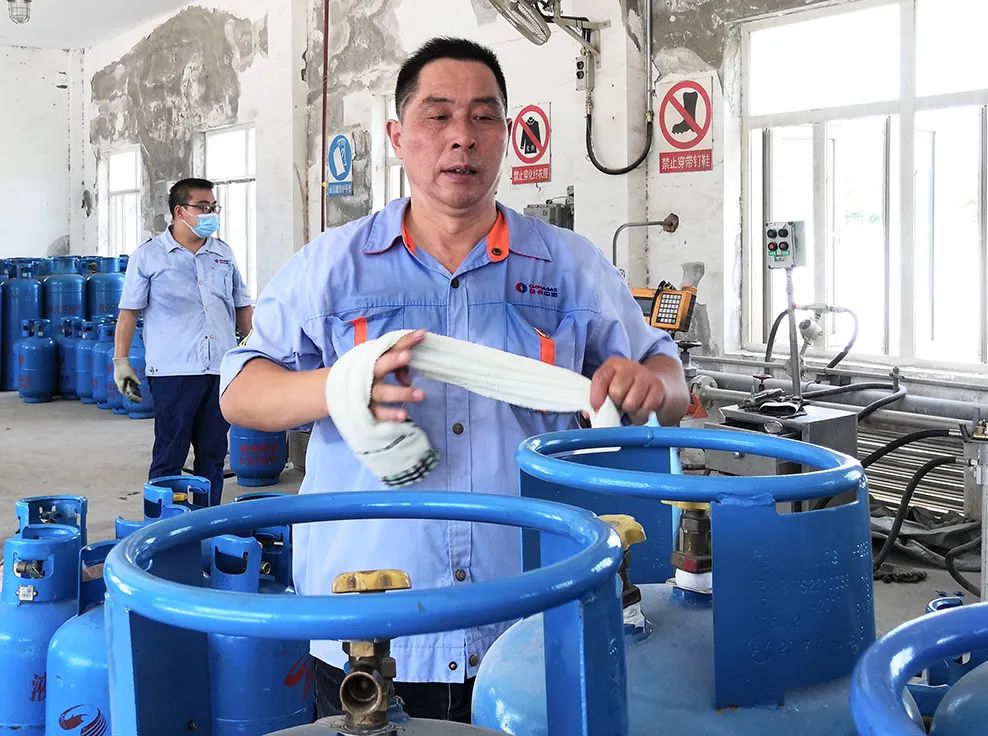 據(jù)悉,從早上7:30到下午5:30,一天的液化氣灌裝量達(dá)13噸,折算成14.5公斤鋼瓶,灌裝近900瓶,有力地保證了市區(qū)居民液化氣供應(yīng)。